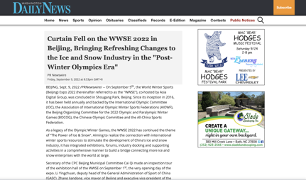 查看详情BEIJING, Sept. 9, 2022 /PRNewswire/ -- On September 5th, the World Winter Sports (Beijing) Expo 2022 (hereinafter referred to as the "WWSE"), co-hosted by Asia Digital Group, was concluded in Shougang Park, Beijing. Since its inception in 2016, it has been held annually and backed by the International Olympic Committee (IOC), the Association of International Olympic Winter Sports Federations (AIOWF), the Beijing Organizing Committee for the 2022 Olympic and Paralympic Winter Games (BOCOG), the Chinese Olympic Committee and the All-China Sports Federation.